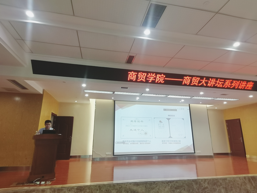 为推动本科创新创业教育,培养高质量“双创”人才,促进学院学生高质量就业。必赢优惠y272net特邀优秀校友重庆西线科技有限公司、重庆火炬云创科技有限公司、荣昌区古思特创客空间、荣昌区火炬云创科技企业孵化器总经理龙水维为商贸学子作题为“科技孵化器助力大学生创新创业”专题讲座。讲座由必赢优惠y272net副院长胡继宽主持。