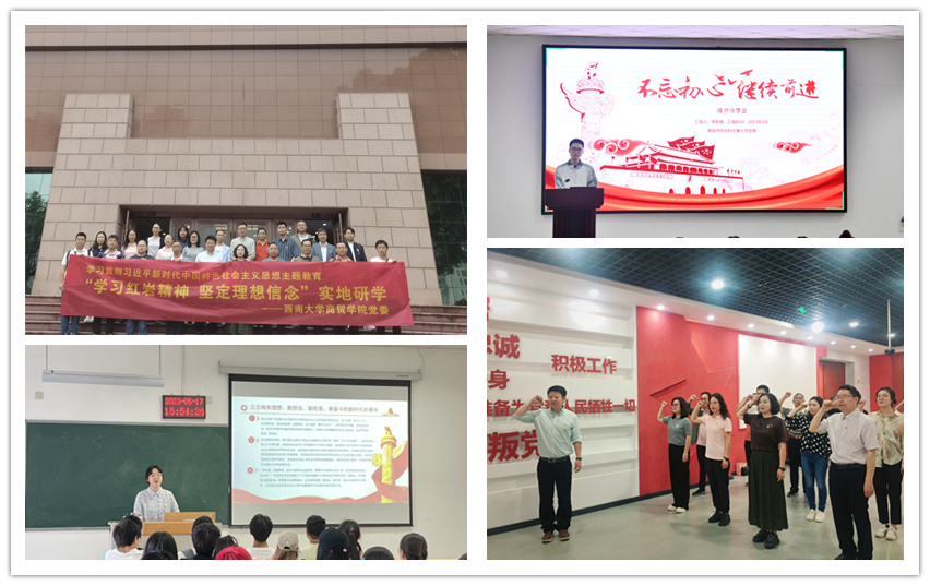 付诸行动,让主题教育更有“温度”。党的二十大报告提出了继续推进理论创新的科学方法,即必须坚持人民至上、必须坚持自信自立、必须坚持守正创新、必须坚持问题导向、必须坚持系统观念、必须坚持胸怀天下。为付诸行动,让主题教育更有“温度”。学院坚持以“快”促学,组织学生党员进驻班级开展主题教育微宣讲活动,实现班级全覆盖;组织全体教师党员前往重庆红岩革命历史博物馆开展“学习红岩精神 坚定理想信念”实地研学;举办主题教育读书分享会;举办“传承红色基因 争做时代新人”红色故事会;举办“学党章强党性 守初心担使命”知识竞赛。学院党委坚持结合党建工作实际,创新理论学习方式,丰富理论学习内涵,营造良好氛围,充分调动全体党员学习热情,引导和推动党员、干部多思多想、学深悟透。