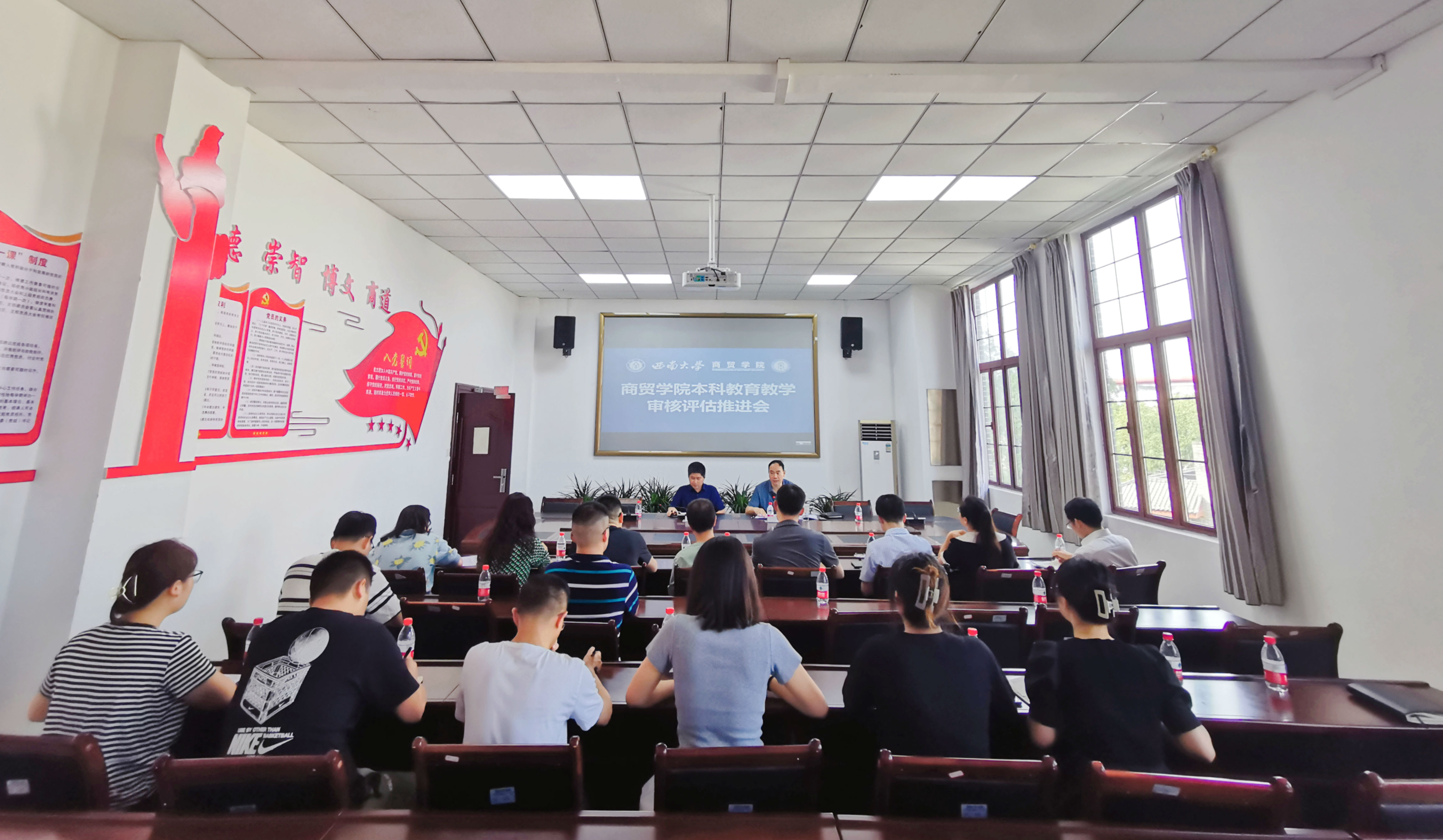 为做好迎接专家组线上评估和入校评估各项准备工作,5月31日上午,必赢优惠y272net在8401会议室召开本科教育教学审核评估推进会。院长张应良主持会议,学院在院领导、各系(中心)正副主任、全体行政教辅人员参会。
