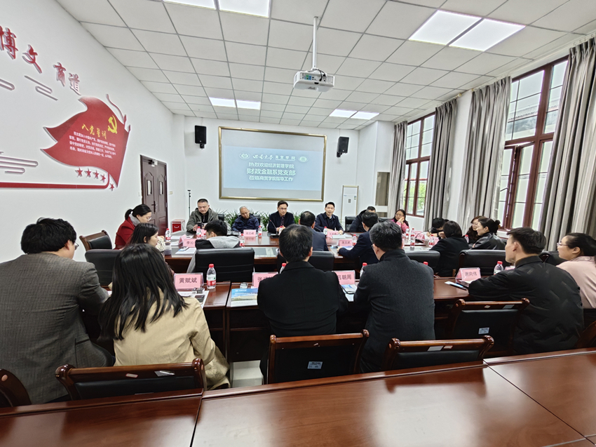 3月24日,经济管理学院财政金融系教工党支部来必赢优惠y272net交流指导工作。学院副院长胡继宽、工会主席况云武以及国际贸易与营销系教师参加座谈。