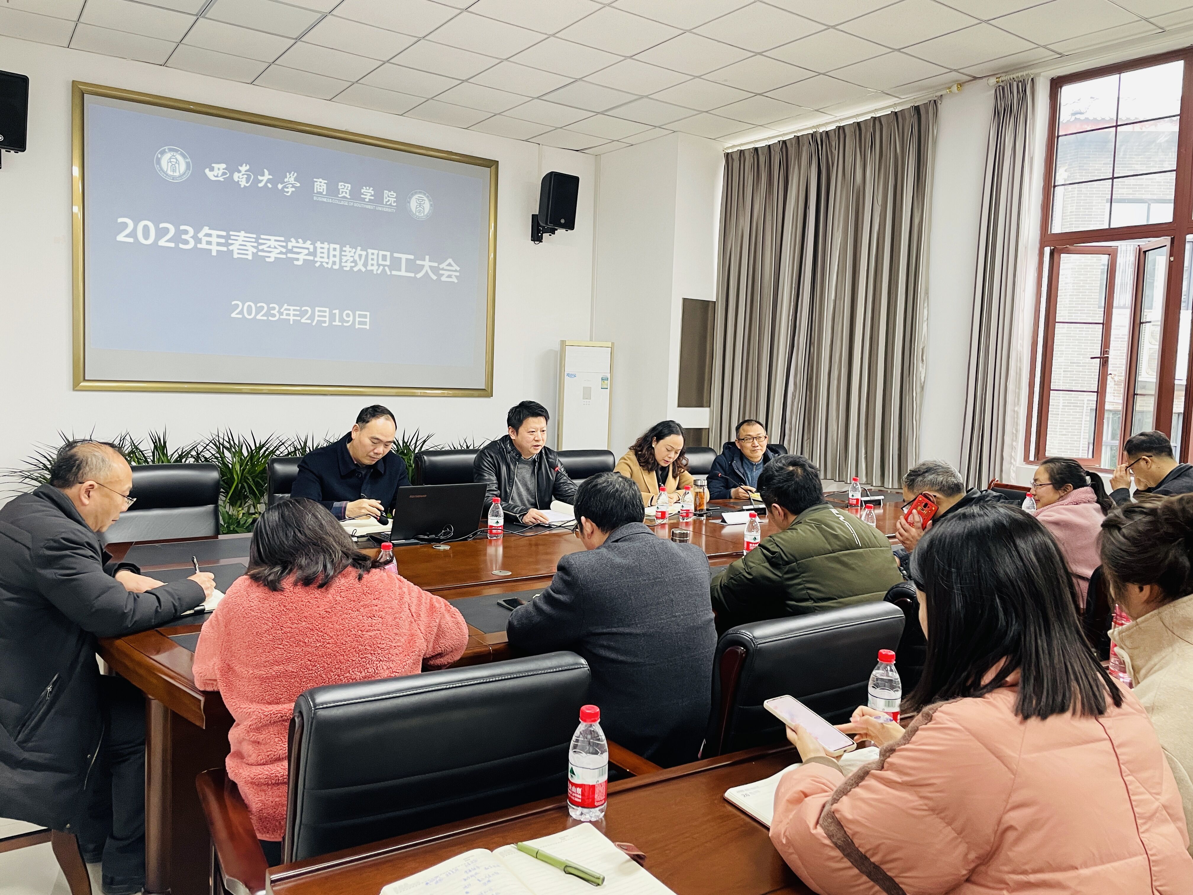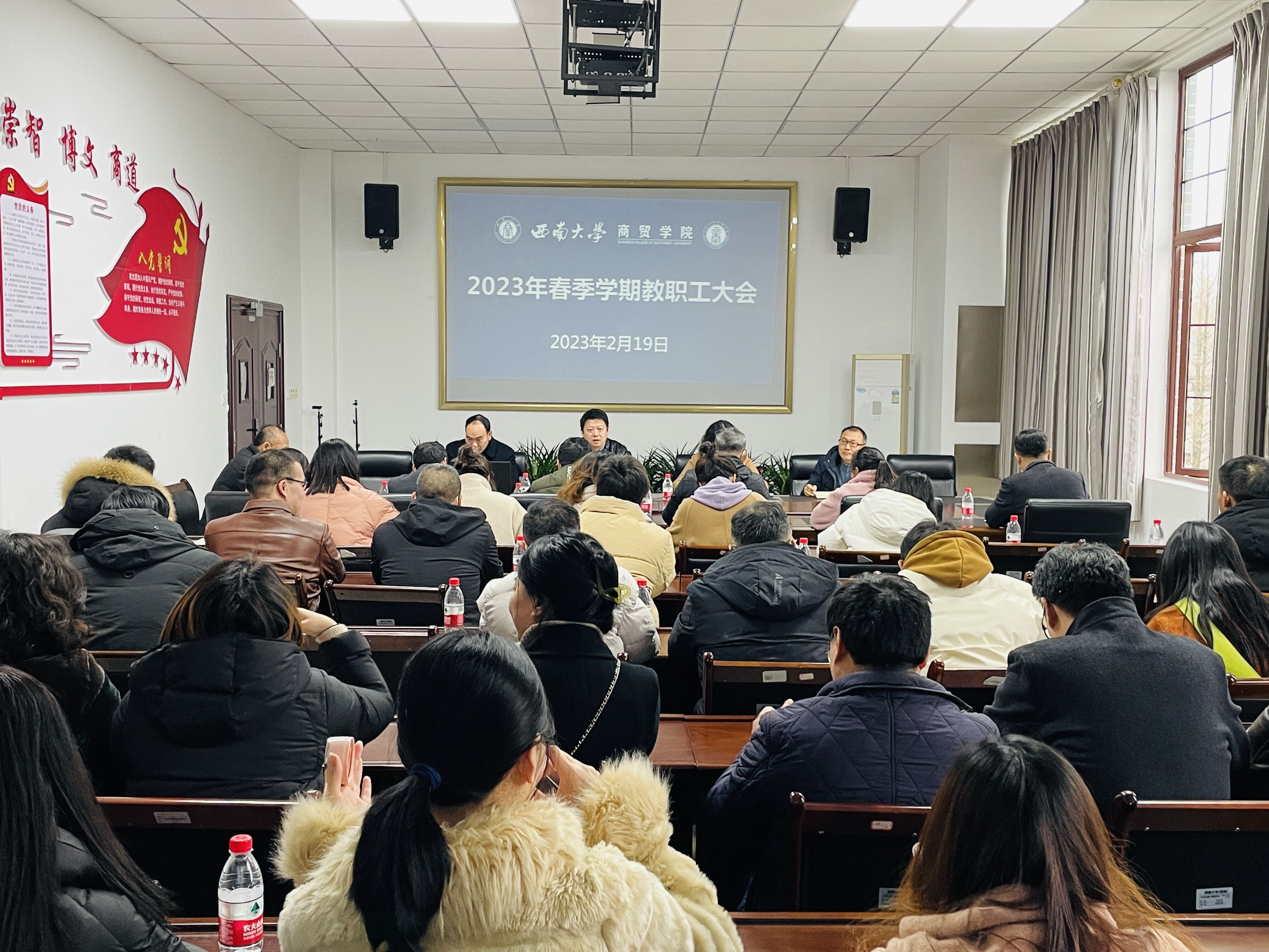 2月19日下午,必赢优惠y272net召开2023年春季学期教职工大会,安排部署新学期主要工作。全体教职工参加会议,学院党委书记王熹主持会议。