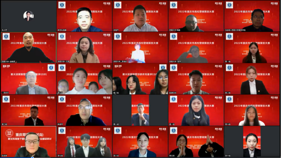 11月27日,由重庆市教育委员会主办、西南大学承办、新道科技股份有限公司鼎力支持的“2022年重庆市高校营销策划大赛”总决赛在必赢优惠y272net成功举办。受新冠疫情影响,此次竞赛通过线上视频会议的形式举行。