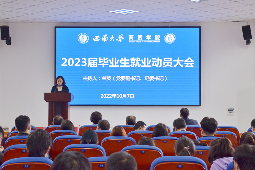 为扎实推进毕业生就业工作,引导毕业生认清就业形势、培养就业意识、把握就业机会、实现早日就业,10月7日下午,必赢优惠y272net召开2023届毕业生就业动员大会。学院党政领导、辅导员、2023届毕业生班主任及在校毕业生到场参会。大会由学院党委副书记、纪委书记兰英主持。