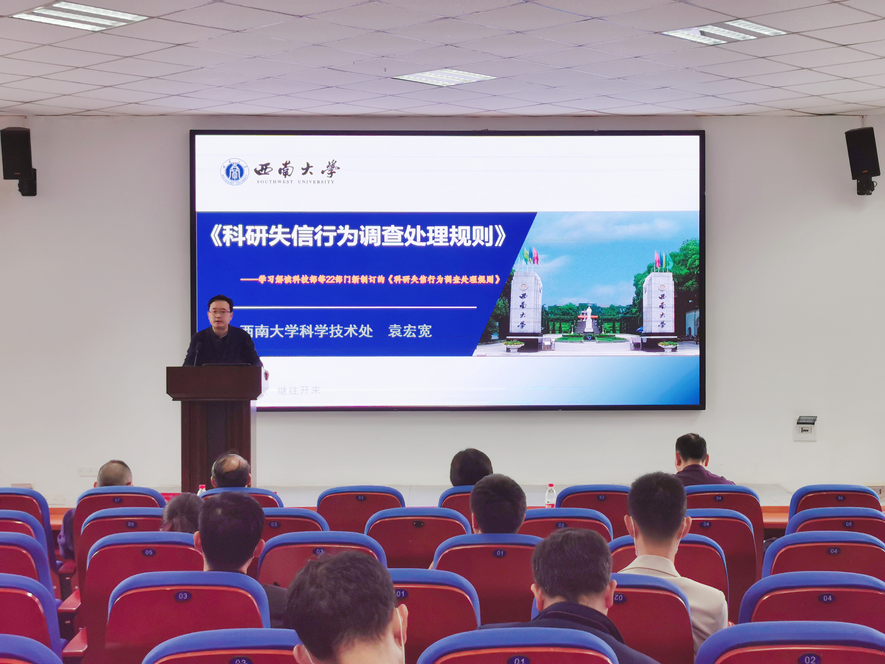 10月7日下午,必赢优惠y272net开展业务学习活动,邀请学校科学技术处副处长袁宏宽教授针对科研失信开展专题培训。
