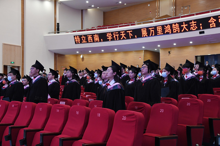 “亲爱的母院,您好!我们因毕业需请假离校,去往祖国各地,时间永远,归期暂定……”2022届本科毕业生代表唐诗为在仪式上深情发言,她满怀感激之情表达对学校、老师和同学的留恋和祝福,满怀憧憬之意倡议全体毕业生以青春之画笔,独家定制精彩之人生。