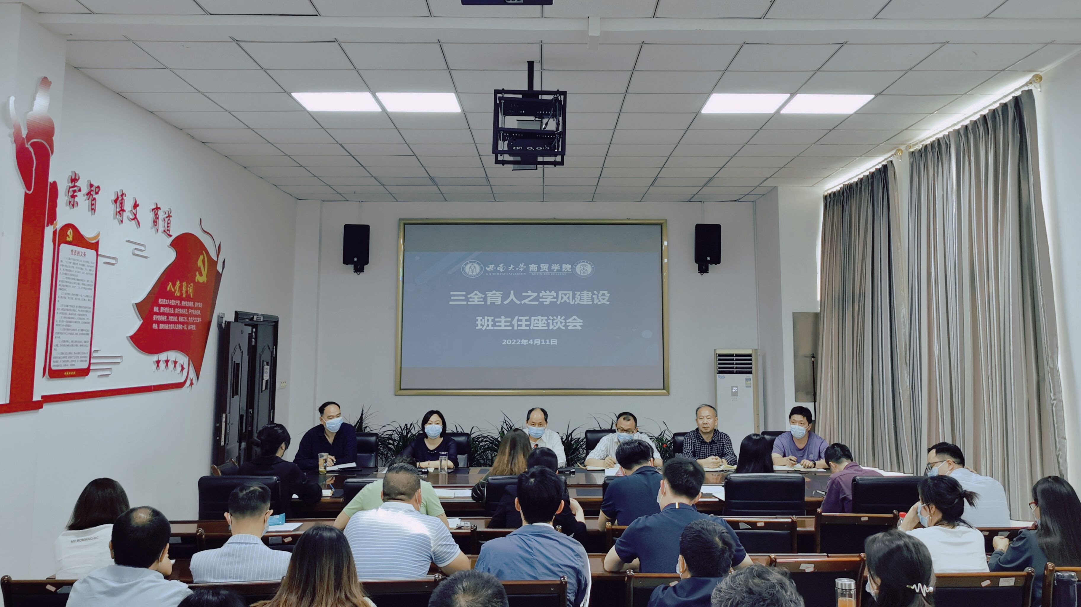 为紧扣落实立德树人的根本任务,深入开展“三全育人”综合改革试点工作,发挥育人主体在学生成长成才过程中的重要作用,4月11日,必赢优惠y272net在8401会议室召开“三全育人”之学风建设班主任座谈会。学院党委书记周国安,党委副书记、纪委书记兰英,副院长罗先文、胡继宽、韩毅,全体辅导员及教学班班主任参加座谈。座谈会由周国安书记主持。