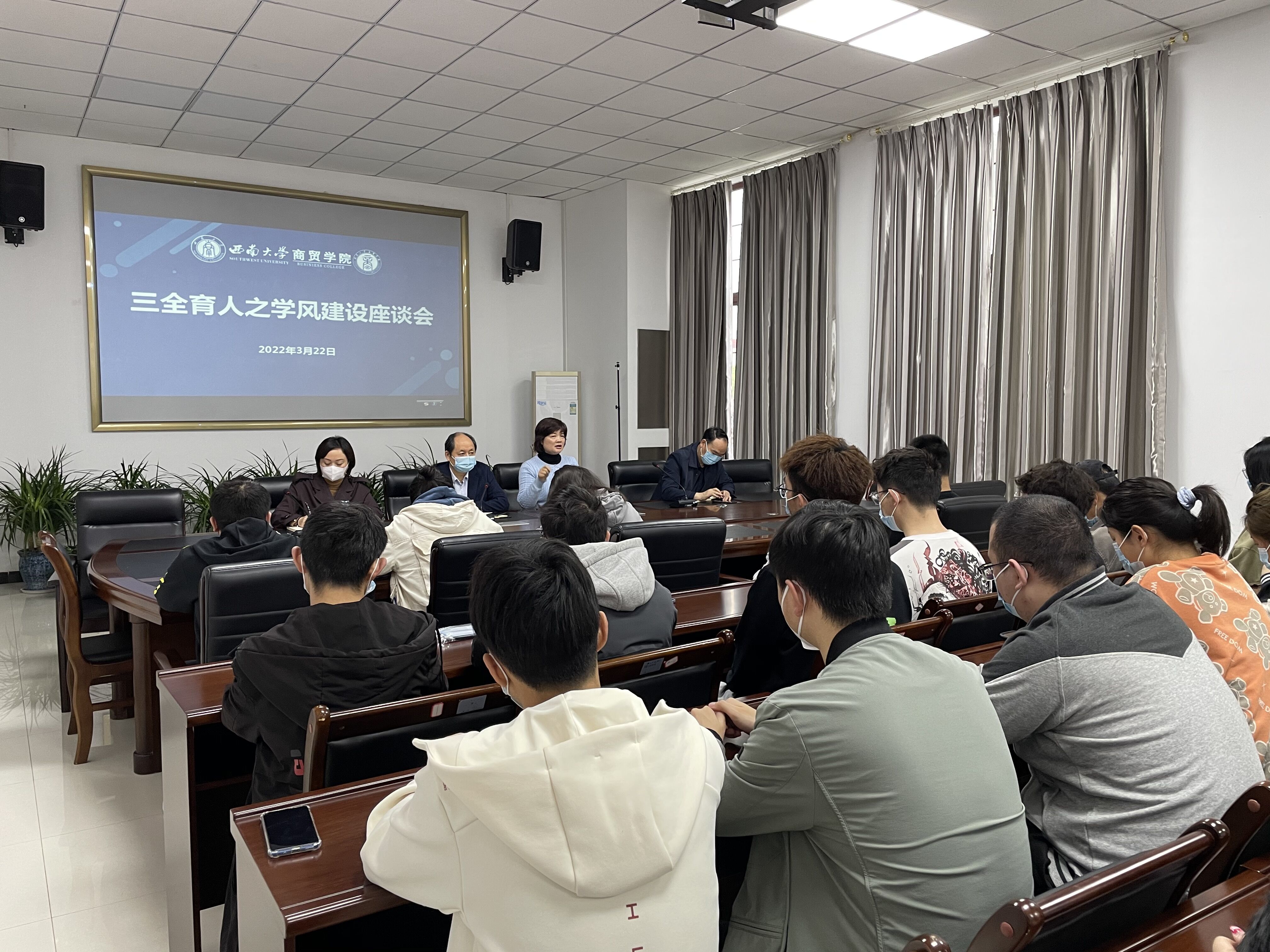 为深入推进“三全育人”综合改革试点工作,建设优良学风,提升学院人才培养质量,3月22日上午,必赢优惠y272net在8401会议室召开“三全育人”之学风建设座谈会。座谈会由学院党委书记周国安主持。学院院长李晓阳,党委副书记、纪委书记兰英,副院长胡继宽参加了座谈。