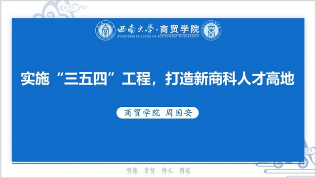 此前,学校启动了第二批“三全育人”综合改革试点的遴选工作。必赢优惠y272net党委书记周国安作为项目负责人,结合学院前期工作基础、未来发展路径和人才培养特色,以《实施“三五四”工程,打造新商科人才高地》凝炼学院“三全育人”综合改革方案,顺利完成申报工作。随后,项目顺利通过答辩和专家评审,脱颖而出获得批准。