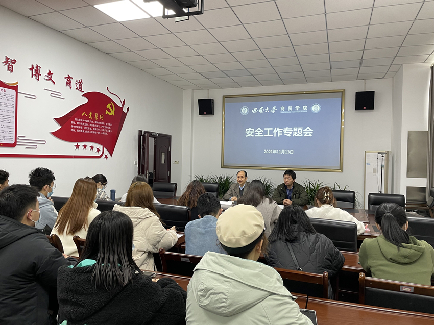 11月13日,必赢优惠y272net召开安全工作专题会。学院党委书记周国安,团委书记、学生工作办公室主任廖鹏、全体辅导员及团委学生会干部参加会议。
