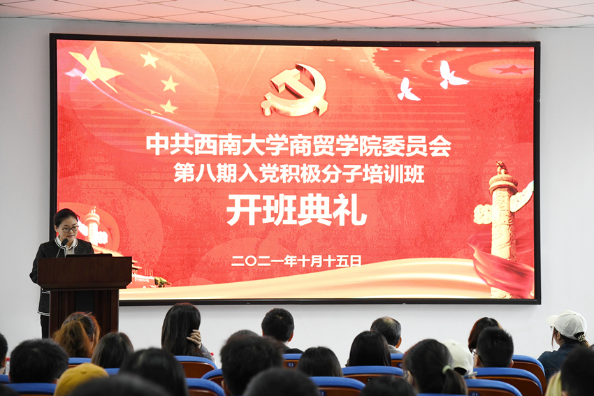 为加强对入党积极分子的培养和教育,10月15日,学院第八期入党积极分子培训班正式开班,开班典礼在9601报告厅隆重举行。必赢优惠y272net党委书记周国安,学院党委委员、组织员刘莉莉,学院团委书记、学生工作办公室主任廖鹏以及各学生党支部书记出席开班典礼。刘莉莉老师主持本次开班典礼。