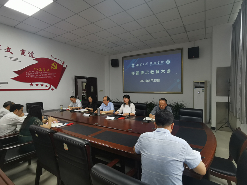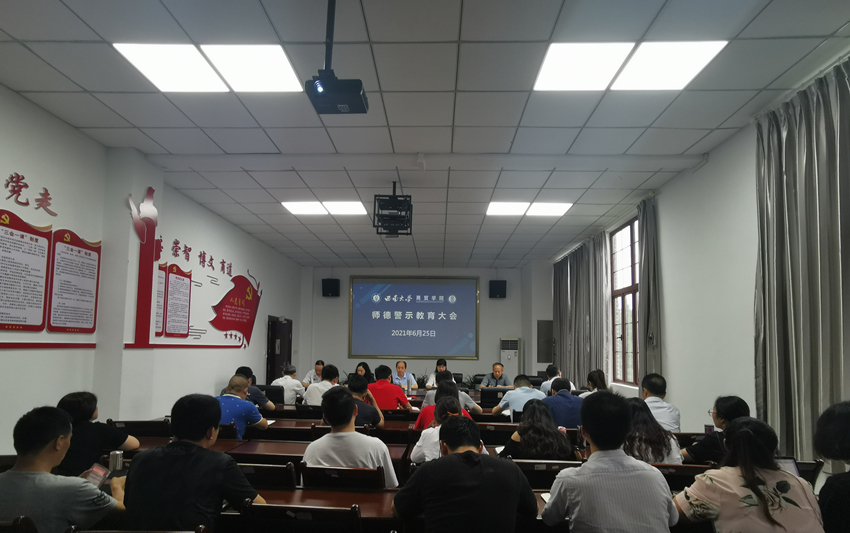 6月25日,学院在8401会议室召开师德警示教育大会,全院教职工参会。会议由学院党委书记周国安主持。