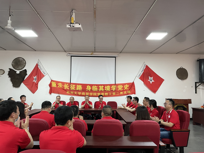 研学期间,全体成员开展了党史学习专题座谈会。教工第二党支部书记姚文表示,今天的学习很充实,我们要永远铭记英雄们的付出,学习前辈不畏艰难困苦顽强战斗的精神。学院党委委员、副院长罗先文指出,在党史学习过程中,党员同志们要全身心投入,沉下心来学、联系实际学,真正做到学有所思、学有所悟、学有所得,学出坚定信念、学出坚强党性、学出信仰担当。