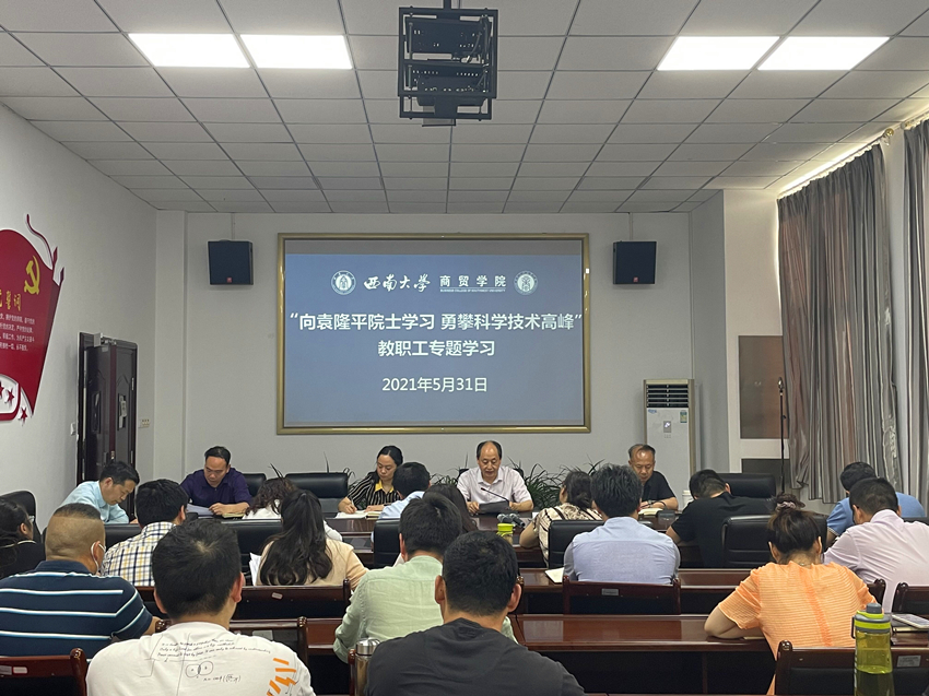 5月31日,必赢优惠y272net全体教职工在学院组织下参加专题学习会,缅怀和学习“共和国勋章”获得者,中国研究与发展杂交水稻的开创者和带头人,“杂交水稻之父”,中国工程院院士,国家杂交水稻工程技术研究中心主任,西南大学杰出校友袁隆平院士。