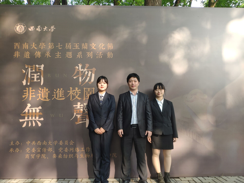 为了保护和传承非遗文化,促进广大师生对传统美德和人文精神的理解和认同,4月8日“西商非遗”(西南大学荣昌非物质文化遗产研究中心)组队携荣昌折扇、荣昌陶器参加西南大学第七届玉兰文化节非遗传承主题系列活动,学院团委书记、学工办主任廖鹏带队。