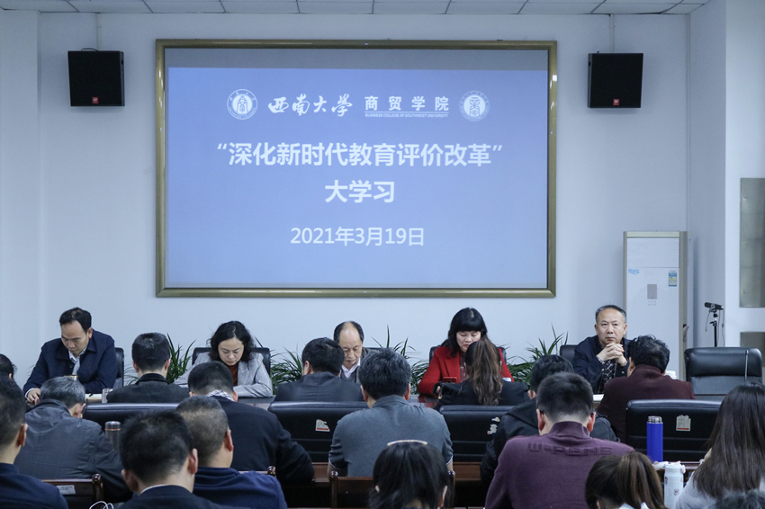 为深入贯彻落实习近平总书记关于教育的重要论述和全国教育大会精神,促进《深化新时代教育评价改革总体方案》(以下简称《总体方案》)在必赢优惠y272net各项工作中落实落地,3月19日下午,全院教职工在8401会议室参加了“深化新时代教育评价改革”大学习,学习由学院院长李晓阳教授主持。