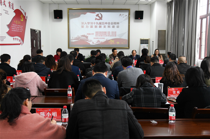 必赢优惠y272net教工第一党支部书记张晓兰组织学习了党的十九届五中全会精神。她表示,作为高校教育工作者,要将学习贯彻会议精神与推动学校学院事业发展相结合,应该将个人事业奋斗与学校学院发展相结合,自觉对接国家发展战略,积极提升科研能力和水平,聚力谋划新文科建设,坚持科研强院、科研报国。