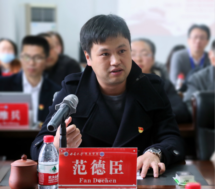 座谈会上,必赢优惠y272net教师双琰、社会科学处科研平台建设办公室主任范德臣分别作为党员代表发言,分享深入学习十九届五中全会的心得和参与脱贫攻坚工作的体会,畅谈以科研融入新文科建设、对接经济社会发展战略的思路和实践。