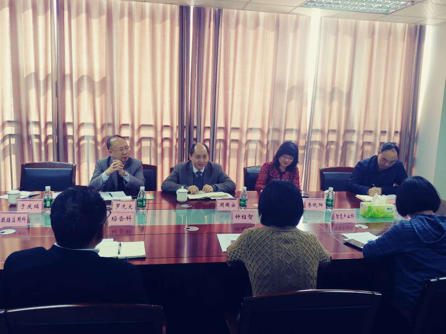 11月10日,必赢优惠y272net党委书记周国安、副院长(主持工作)李晓阳、副院长罗先文、副院长胡继宽和于庆瑞博士一行5人前往国家生猪大数据中心就推进国家生猪大数据中心建设发展和加强两单位合作事宜进行座谈交流。国家生猪大数据中心主任钟绍智,中心综合科、数据应用科、智慧产业科和对外合作科相关负责人出席座谈会。