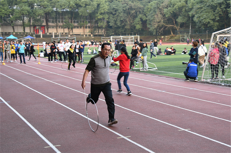 教职工为10*60米接力跑参赛运动员加油喝彩