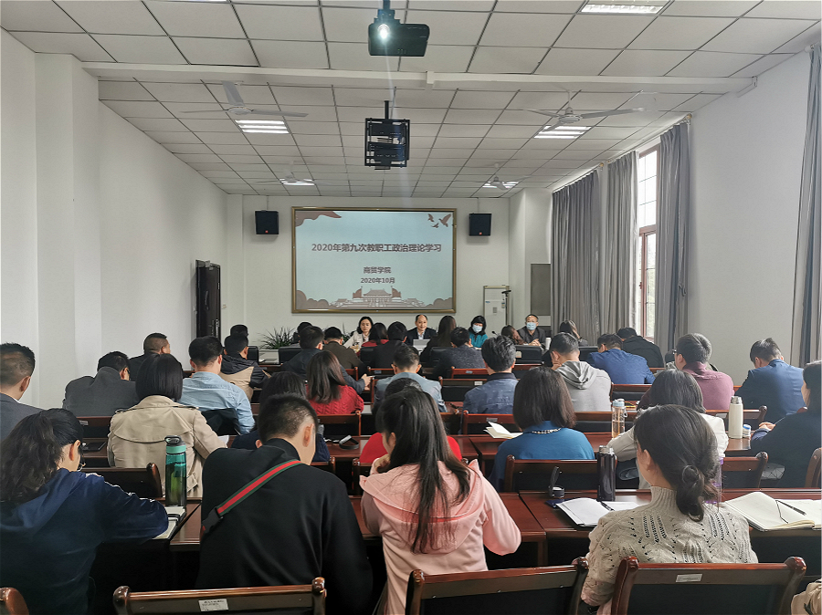根据学校和学院的工作安排,必赢优惠y272net于2020年10月9日下午在8401会议室组织召开2020年第九次教职工政治理论学习。全体教职工参加学习,会议由学院党委书记周国安主持。