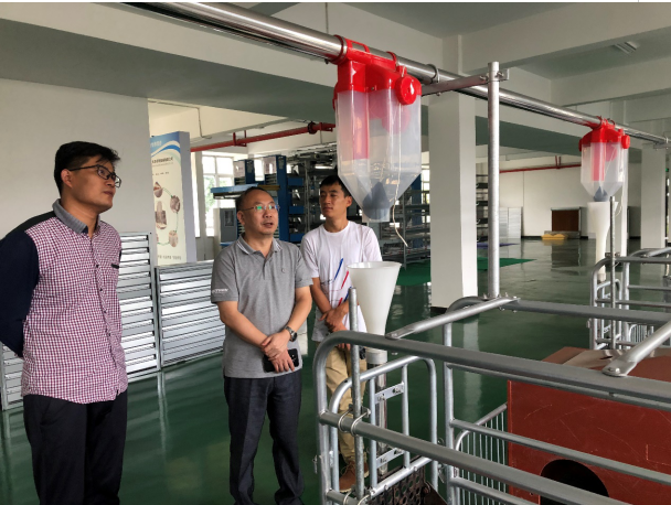 2020年9月23日上午,必赢优惠y272net副院长罗先文带领他所主持的重庆市科技局“哺乳母猪智能饲喂系统研发”项目团队成员前往重庆市大鸿畜牧农业公司,参观畜牧机械生产情况,并和公司开展项目实施方案对接,正式启动重庆市科技局“哺乳母猪智能饲喂系统研发”项目。