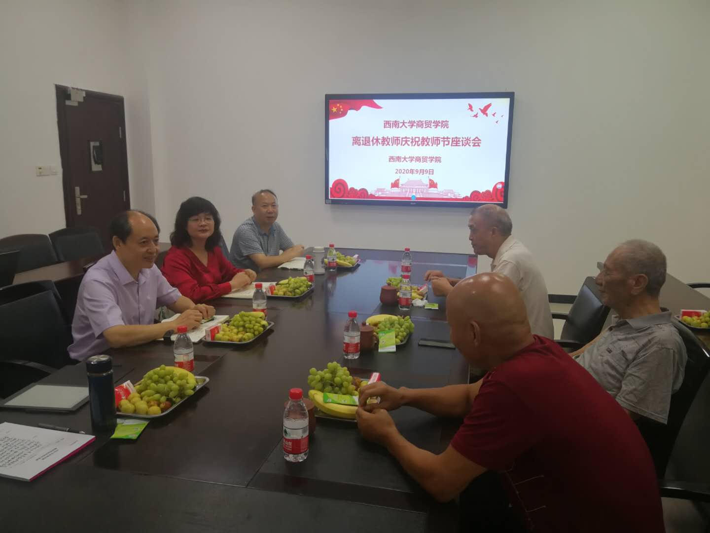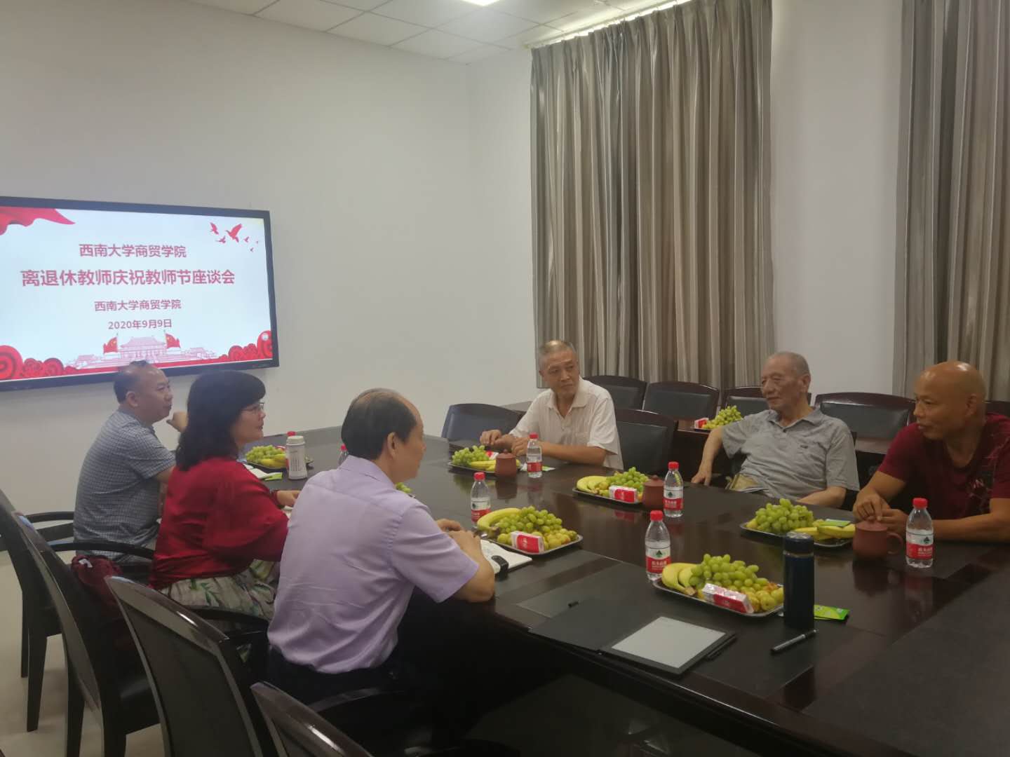 9月9日,在第三十六个教师节到来之际,必赢优惠y272net在8403会议室举行学院离退休教师庆祝教师节座谈会,学院党委书记周国安、副院长(主持工作)李晓阳、副院长罗先文等与必赢优惠y272net在荣离退休教师共聚一堂,共叙情暖。