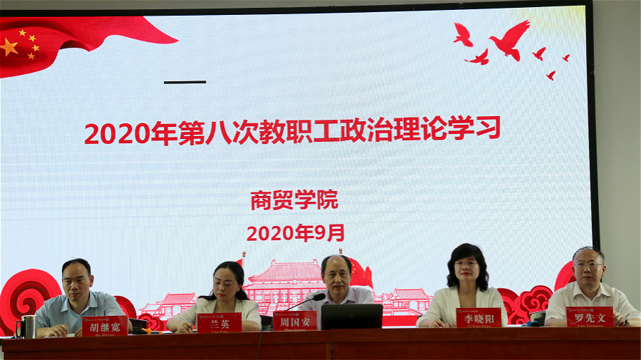 会议首先组织了2020年第八次教职工政治理论学习。院党委书记周国安带领全体学习了习近平总书记在经济社会领域专家座谈会上的重要讲话精神,习近平总书记关于研究生教育工作的重要指示精神、李克强总理批示精神,以及全国研究生教育会议精神。