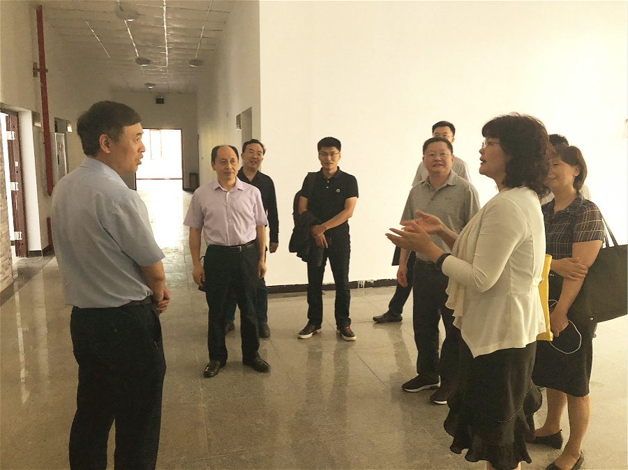 随后,潘书记一行在学院党委书记周国安、副院长(主持工作)李晓阳的陪同下来到第八、九教学楼实地查看了学院新办公楼建设和装修情况。周国安书记向潘书记等领导汇报了学院发展愿景、学科专业定位、人才培养理念、创新创业等工作情况。