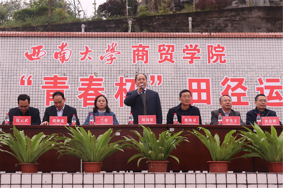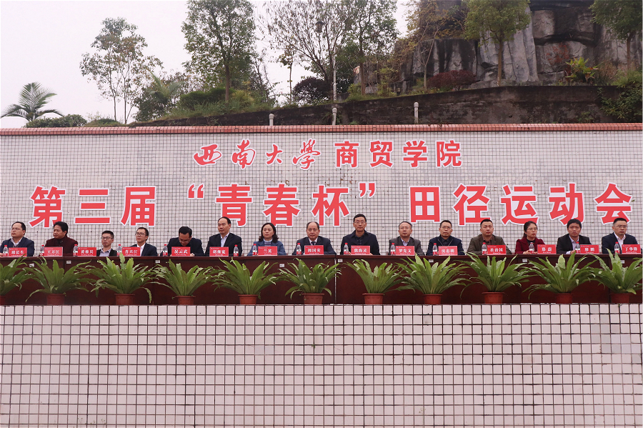 为积极响应新时代“健康中国,全民健身”的号召,继续开展实施学院五大人才培养计划之“青春健身计划”,增强学院师生凝聚力,展现商贸学子朝气蓬勃的青春风采,11月8日下午,学院第三届“青春杯”田径运动会开幕,学院党政领导班子、各系(部门)负责人、全体教职工以及全体同学参加了在田径场举行的开幕式。