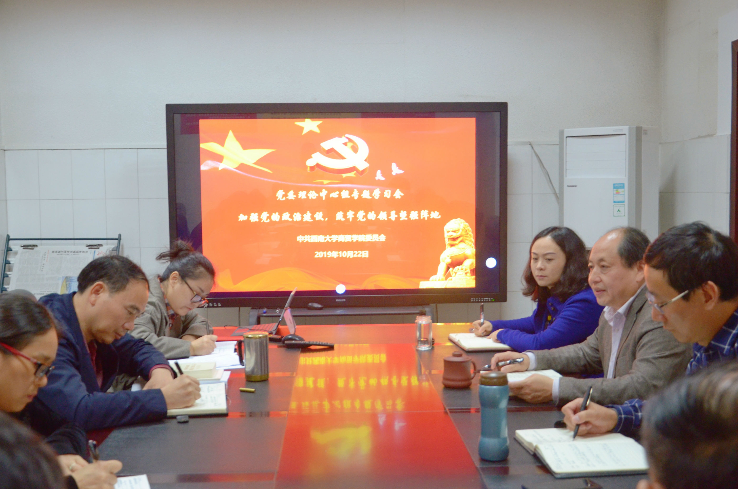 10月22日,学院党委在第一会议室召开“加强党的政治建设,筑牢党的领导坚强阵地”党委理论中心组专题学习会。学院党委书记周国安主持了学习会。