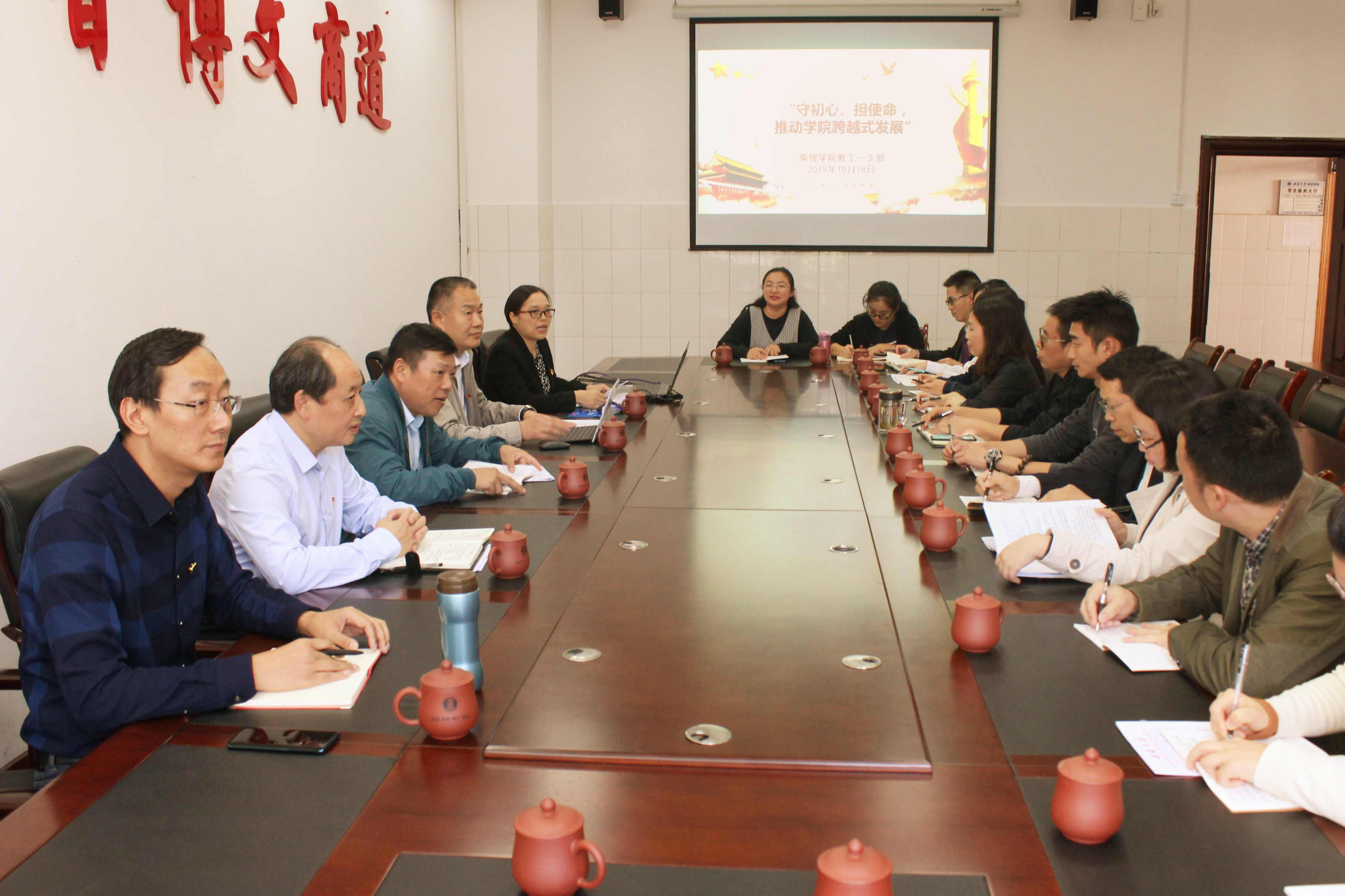 10月18日下午,张卫国校长一行莅临我院,指导教工第一党支部开展“守初心,担使命,推动学院跨越式发展”主题党日活动,深入推进“不忘初心、牢记使命”主题教育。校长办公室主任葛信勇陪同出席,学院党委书记周国安、党委副书记、院长熊海灵和党支部全体党员参加活动,党支部书记张晓兰主持活动。
