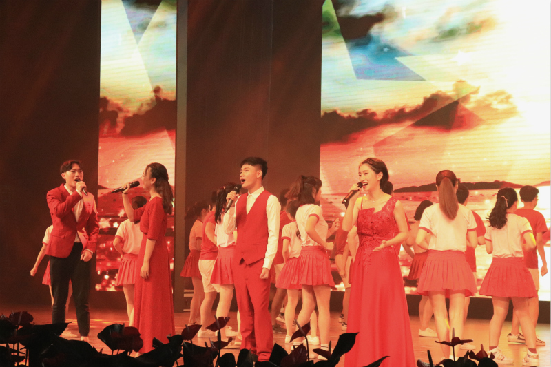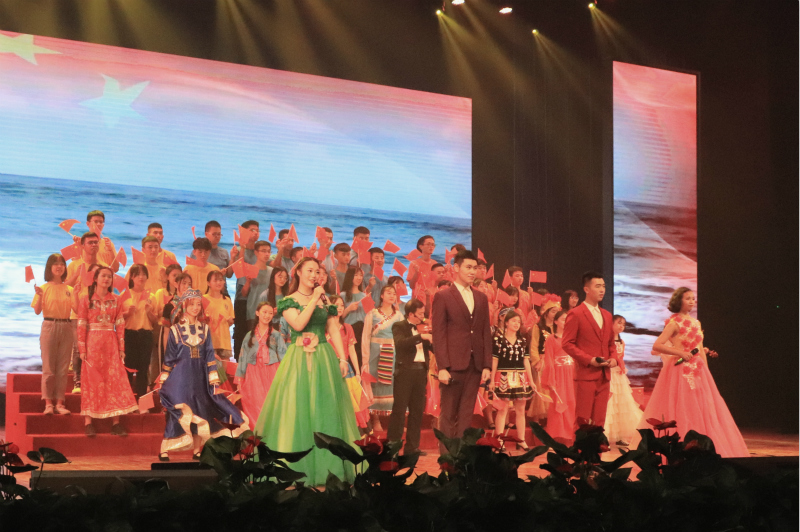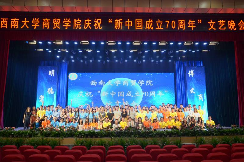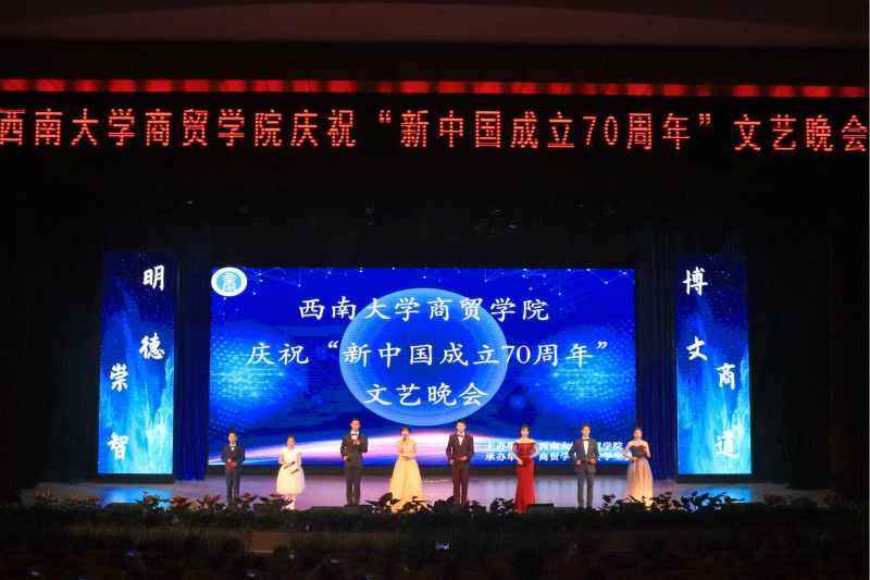 牡丹向阳国昌盛,雄鹰鸾鸟舞华荣。为献礼祖国七十华诞,讴歌祖国辉煌历程,喜迎学校党代会,欢送即将离校的2019届毕业生,6月21日晚,学院隆重举办了庆祝“新中国成立70周年”文艺晚会。