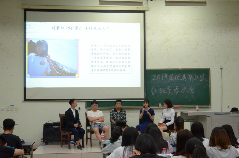 2015级信息管理与信息系统专业毕业生陈昊泽、2015级计算机科学与技术专业毕业生胡超和2015级公共事业管理专业毕业生刘家红向大家分享了考研、保研的成功经验。保研至南开大学的陈昊泽同学提醒大家,要通过多种渠道保研,沉着应对面试;在考研方面,胡超同学提到,大家要认真学习考研相关科目,有计划地按时复习。