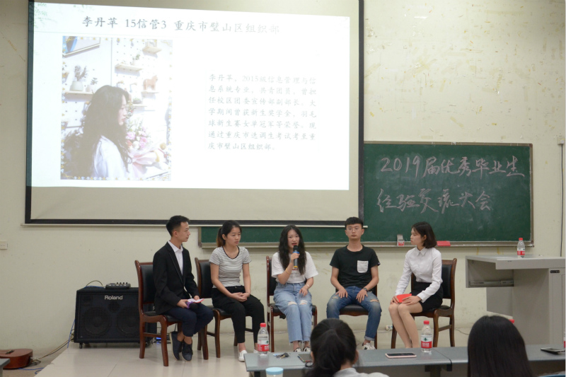 6月19日19:00,学院在2411教室举行了2019届优秀毕业生经验交流大会,邀请了2015级刘家红、游煌雪等优秀毕业生作为嘉宾分享自己的经历,鼓励更多同学努力奋进,追求卓越目标。
