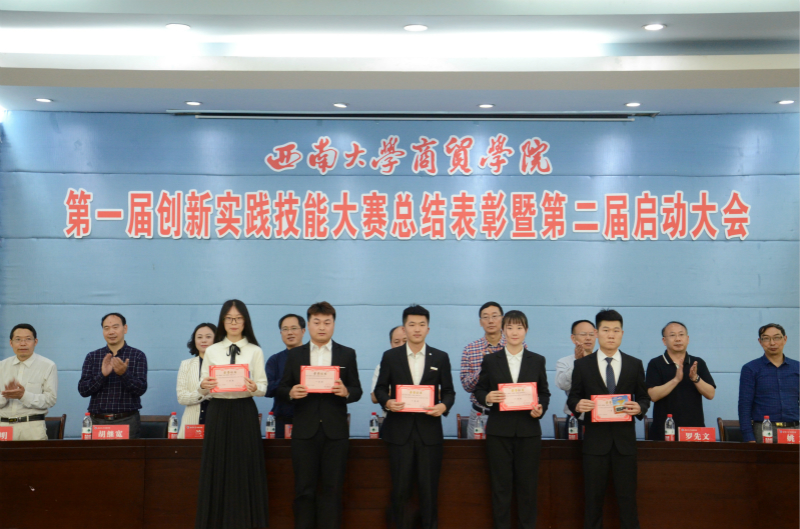 5月5日下午5时许,学院在2211报告厅举行了第一届创新创业实践技能大赛总结表彰暨第二届创新实践技能大赛启动大会。院党委书记周国安,院长、党委副书记熊海灵,校区管委会副主任杨新斌、教务办主任曾仁权,院党委副书记、纪委书记兰英,副院长罗先文,副院长胡继宽及各系主任、副主任、办公室主任、团委书记、辅导员等出席了本次大会。