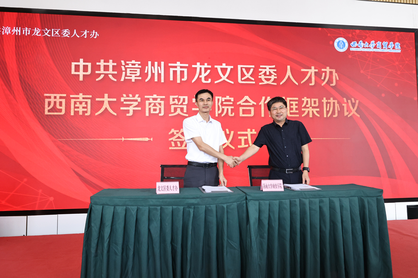 此次走访还有效开拓了院企、院地合作渠道,在探索创新人才培养模式方面卓有成效。张应良院长代表学院与青蛙王子(中国)日化有限公司、漳州信产跨境电商公共服务有限公司签署建立校地合作实践基地的协议,将加快推动合作项目落地,依托基地聚焦人才培养质量提升,实现学院、企业、学生多方共赢。张应良院长还代表学院与漳州市龙文区委人才办签订合作框架协议。双方就全力推进产学研融合,充分发挥协同育人优势,赋能院地双方高质量发展。