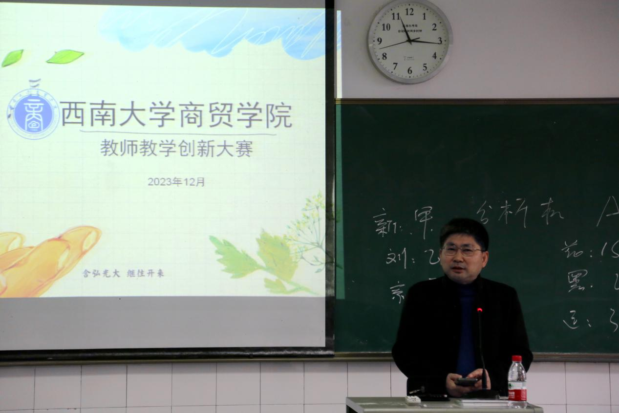 为全面落实立德树人根本任务,大力弘扬教育家精神,促进学院课程思政建设和“四新”建设,推动信息技术与教育教学融合创新发展,提升教师教育教学创新能力,提高人才培养质量,商贸学院于12月15日上午隆重举办2023年教师教学创新大赛。学院院长张应良等担任比赛评委,全体无课教师现场进行观摩学习。比赛由副院长胡继宽主持。