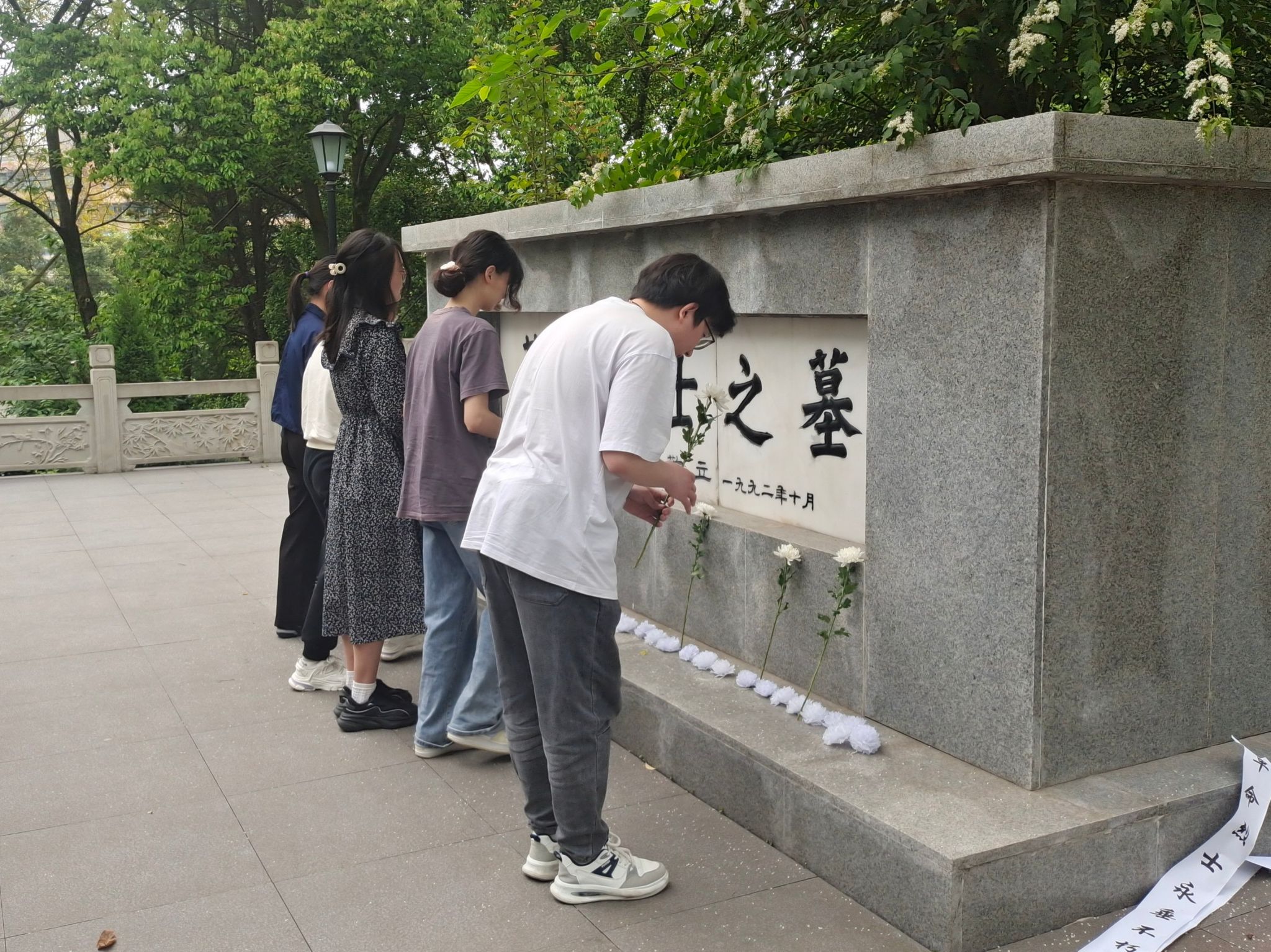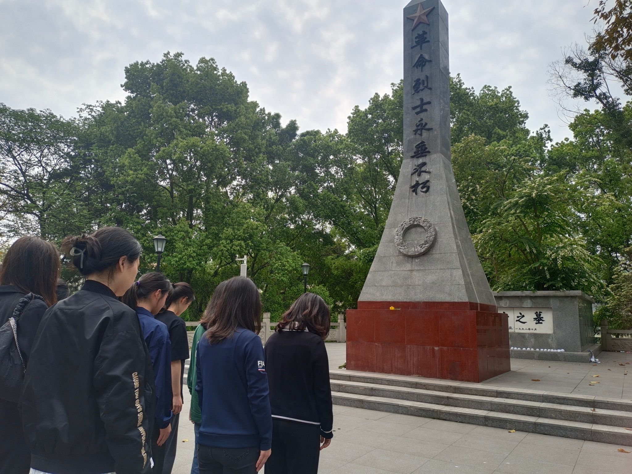 活动伊始,师生党员们在英雄纪念碑前整齐列队,肃立默哀,共同缅怀革命先烈,现场肃静庄严,深深地沉浸在哀思之中。默哀毕,党员们神情肃穆,依次向烈士墓敬献鲜花,表达对革命先烈深切的哀思和崇高敬意。最后,全体党员重温入党誓词,进一步坚定理想信念。