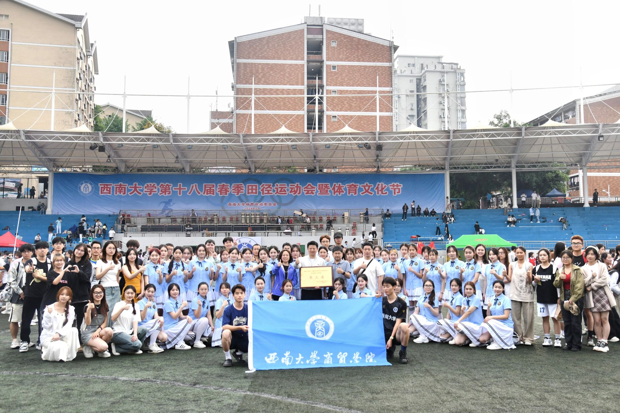 体育是“五育并举”的重要组成部分,抓好体育工作是学院落实立德树人根本任务的重要载体,更是推动“教育强国、体育兴国”建设的必要途径。本届运动会中,商贸健儿们在个人竞技项目中展现了挑战自我、积极进取的昂扬风貌,在团体比赛中发扬了团结协作、齐心共进的团队精神。人生如赛道,踏上跑道是一种选择,离开起点是一种勇气,驰骋赛场是一种胜利。希望每一位商贸人都能够在自己的人生赛道上,奋勇直前,不断创下属于自己的辉煌!