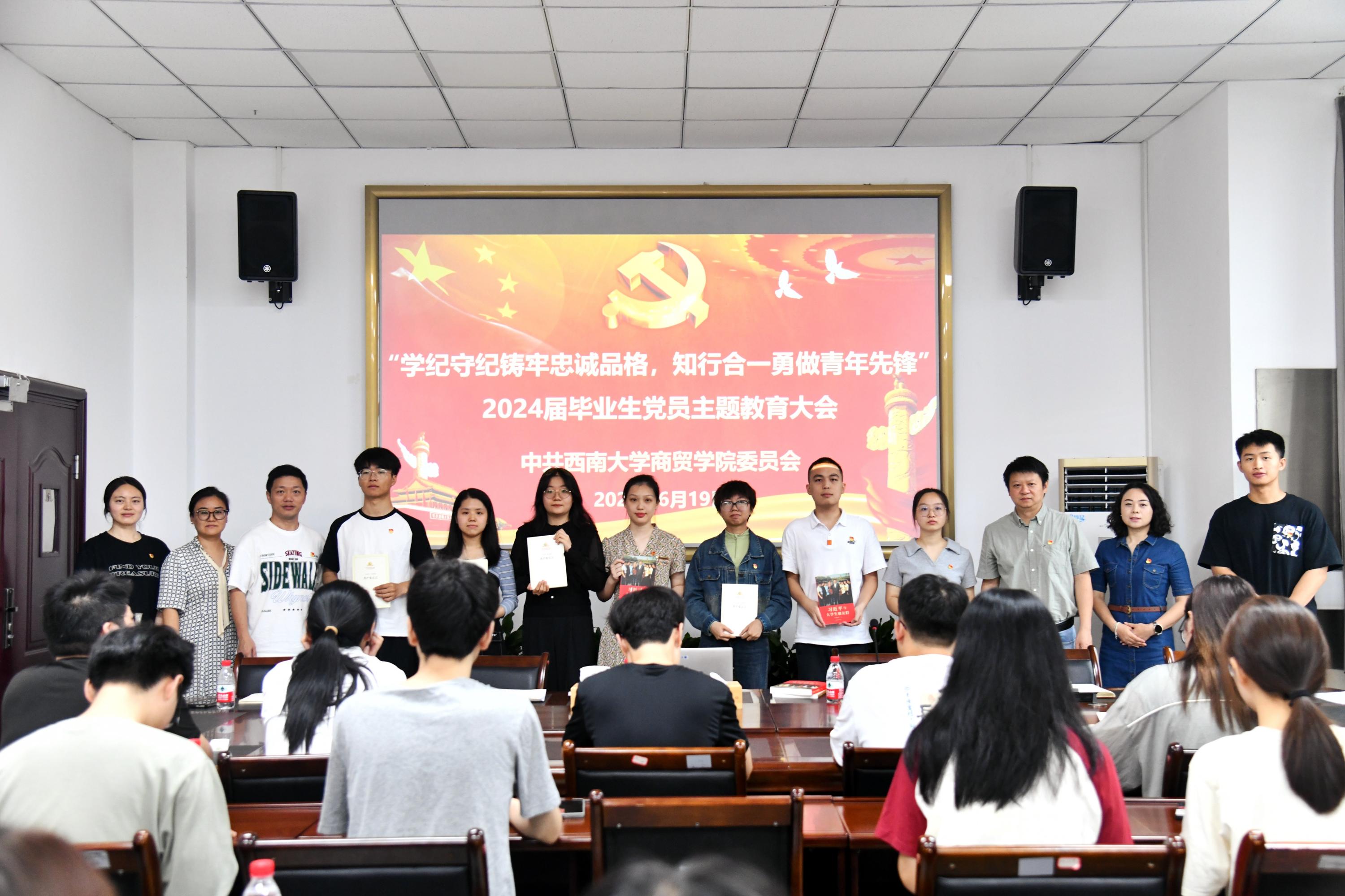 为引导毕业生党员坚定理想信念,牢记党员身份,争做时代先锋,6月19日,必赢优惠y272net开展“学纪守纪铸牢忠诚品格,知行合一勇做青年先锋”2024届毕业生党员主题教育,学院党委书记王熹,党委副书记、纪委书记兰英,各学生党支部书记出席会议,2024届毕业生党员代表参会。