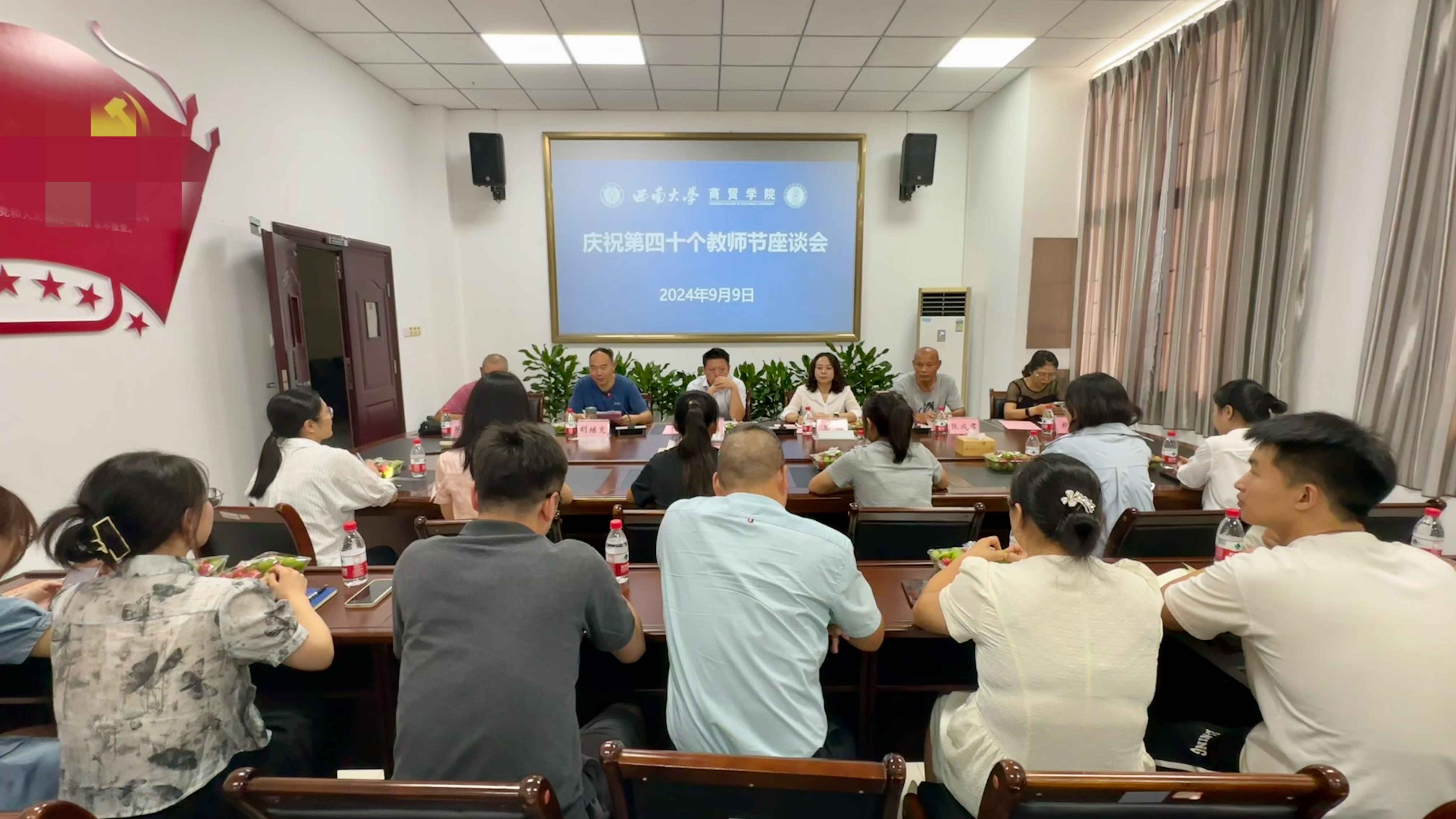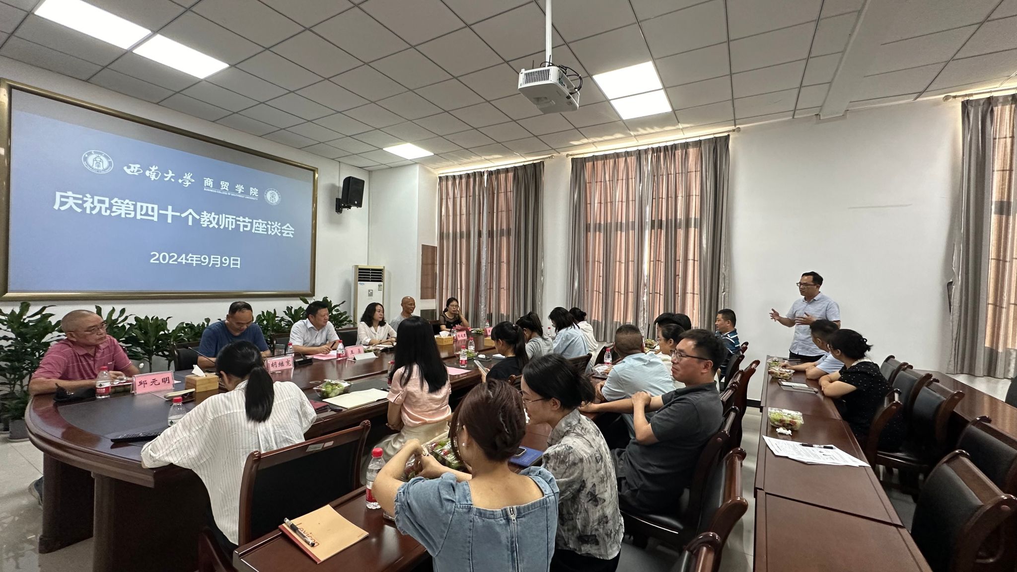 9月9日下午,必赢优惠y272net于8401召开庆祝第四十个教师节座谈会。学院党委书记王熹、党委副书记 纪委书记兰英、副院长胡继宽出席座谈会,退休教师邱元明、张成君、郑蔚、唐俐,近两年新进教师和部分教师代表参加座谈会。座谈会由胡继宽副院长主持。