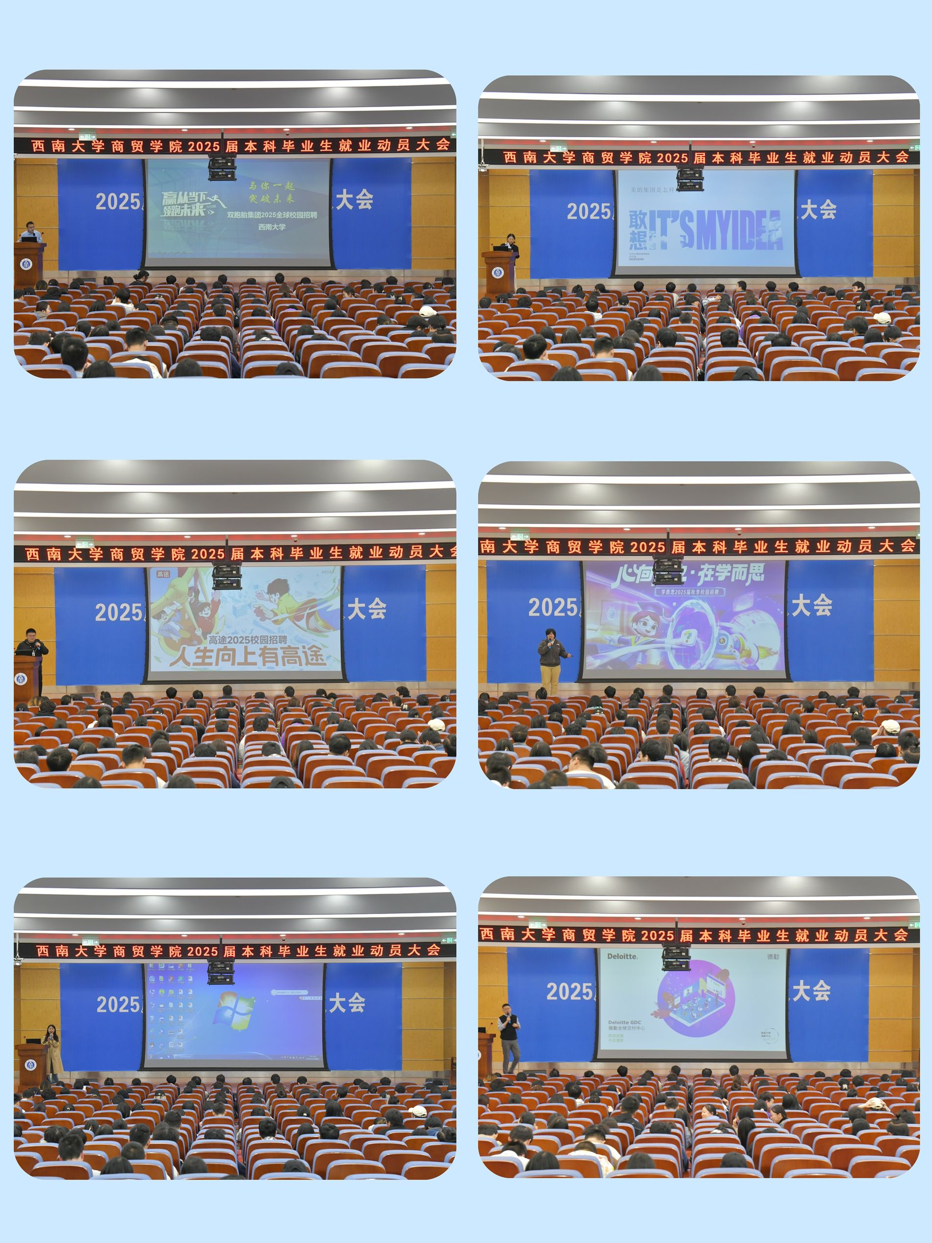 本次双选会邀请了德勤全球交付中心、双胞胎集团、美的集团安得智联科技股份有限公司、重庆苏宁易购销售有限公司、高途教育科技有限公司、重庆新东方教育培训学校有限公司、重庆学而思教育科技培训公司7家企业来院专场招聘,涵括世界500强企业、校友企业、行业领军企业,涵盖教育、科技、金融、服务等领域,招聘岗位数30余个,用人需求超200个。