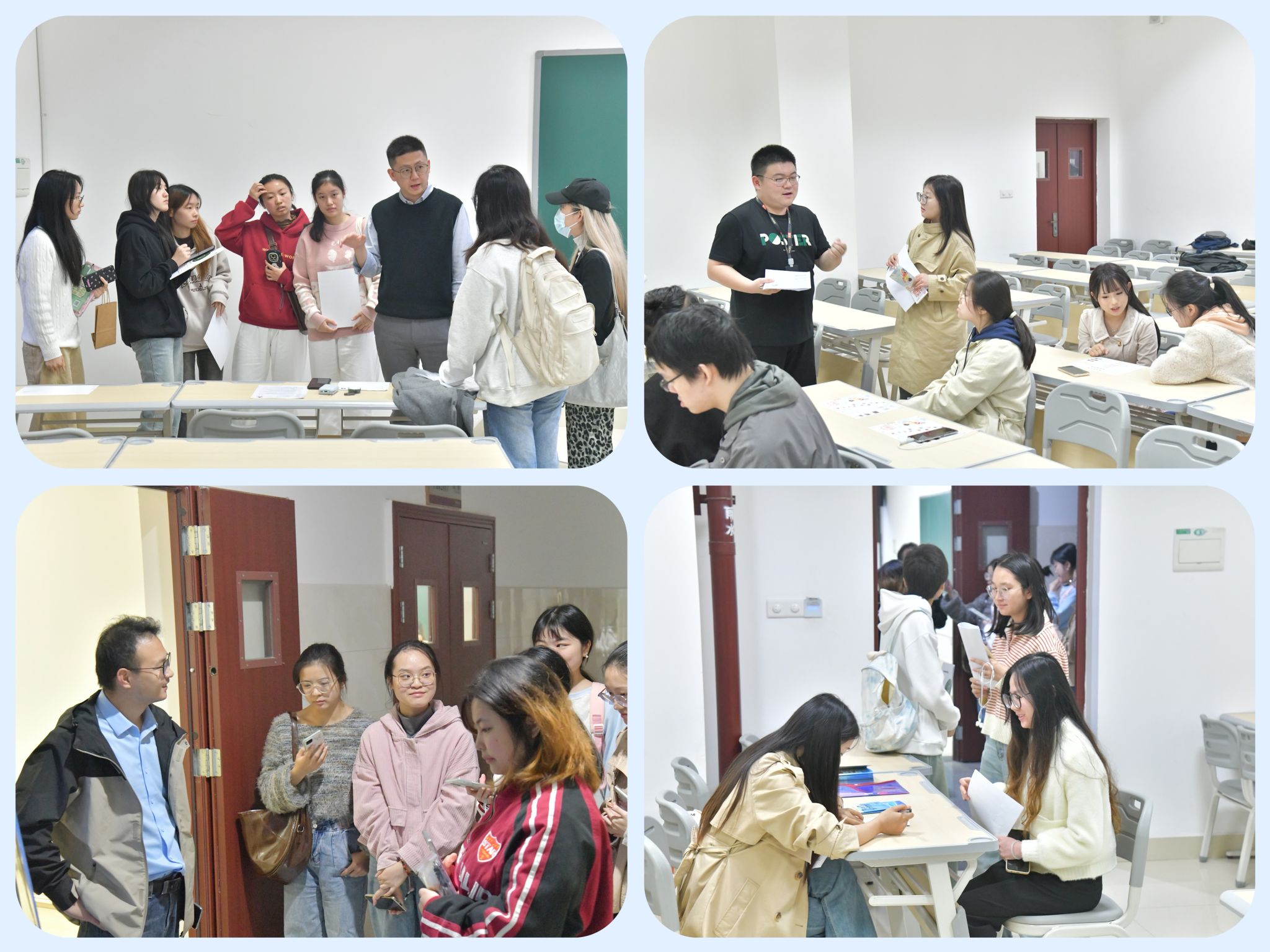 各企业负责人于7B201进行集中宣讲,随后各企业分别在7教二楼进行现场招聘。同学们积极前往现场咨询,并踊跃参加面试,招聘现场火热。据不完全统计,相关企业收到简历近200份,经过无领导小组面试、“一对一”面试后,达成就业意向约30人。