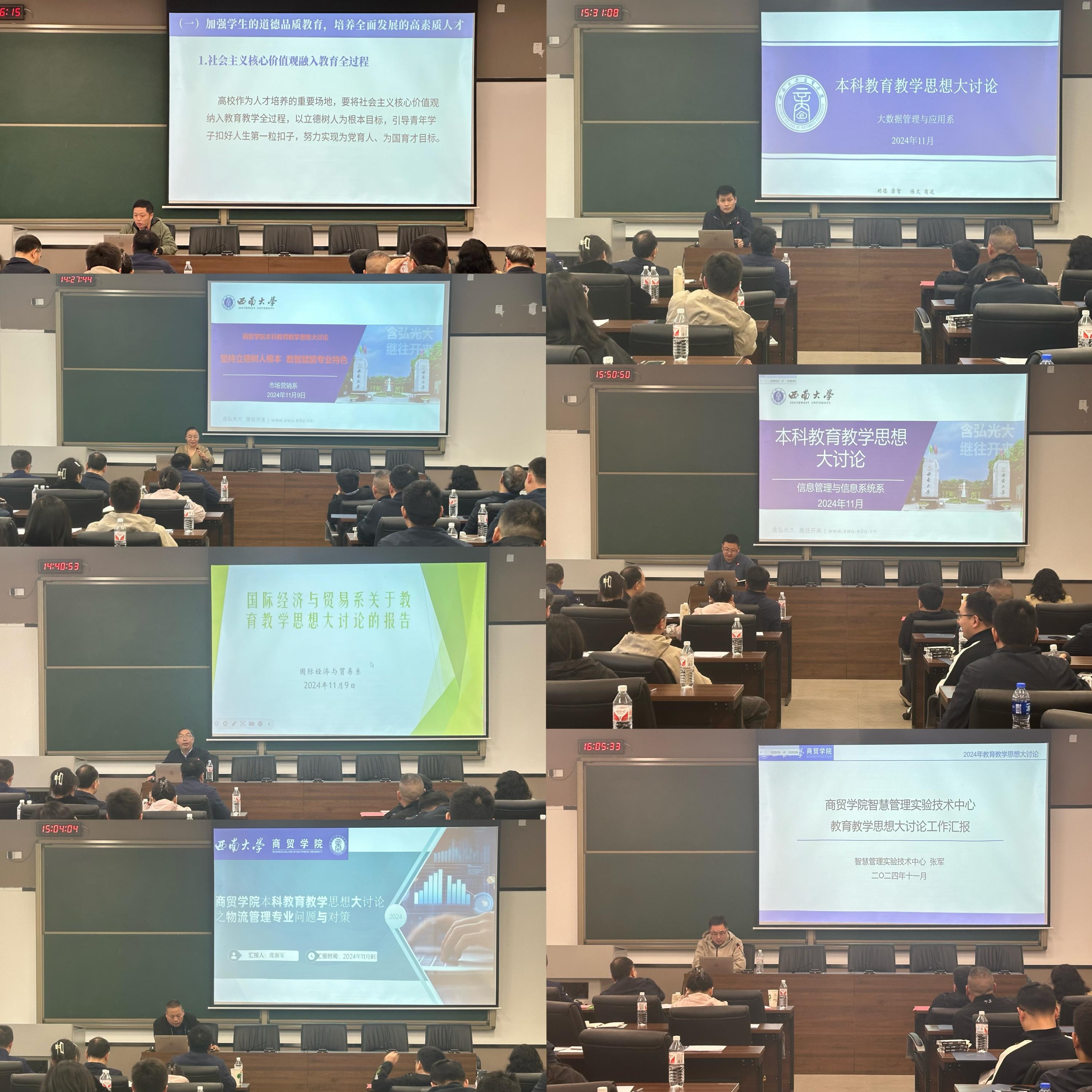 为深入学习贯彻习近平新时代中国特色社会主义思想和党的二十届三中全会精神,深入学习全国教育大会精神,进一步明确学院“高级智慧商业管理人才”培养目标的实施路径,优化管理科学与工程学科点的建设方案,推动专业改造升级。根据学校“以本为本、以生为本,全面推进卓越人才培养”本科教育教学思想大讨论工作安排,11月9日下午,学院于西南大学宜宾研究院综合楼213举办本科教育教学思想大讨论。学院全体教职工参与。讨论会由学院副院长胡继宽主持。