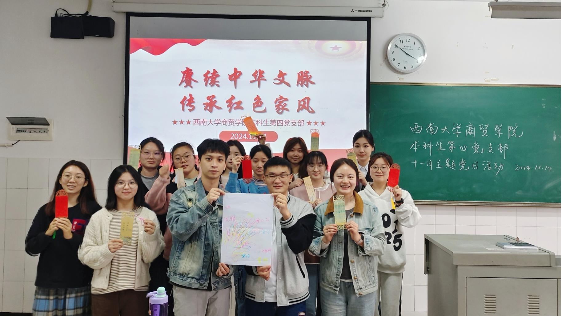 为深入贯彻习近平总书记关于家庭家教家风建设的重要论述精神,弘扬中华民族传统美德,必赢优惠y272net本科生第四党支部于11月14日开展了“赓续中华文脉 传承红色家风”主题党日活动,以引导广大党员从优良家风中汲取精神养分,增强党性修养。