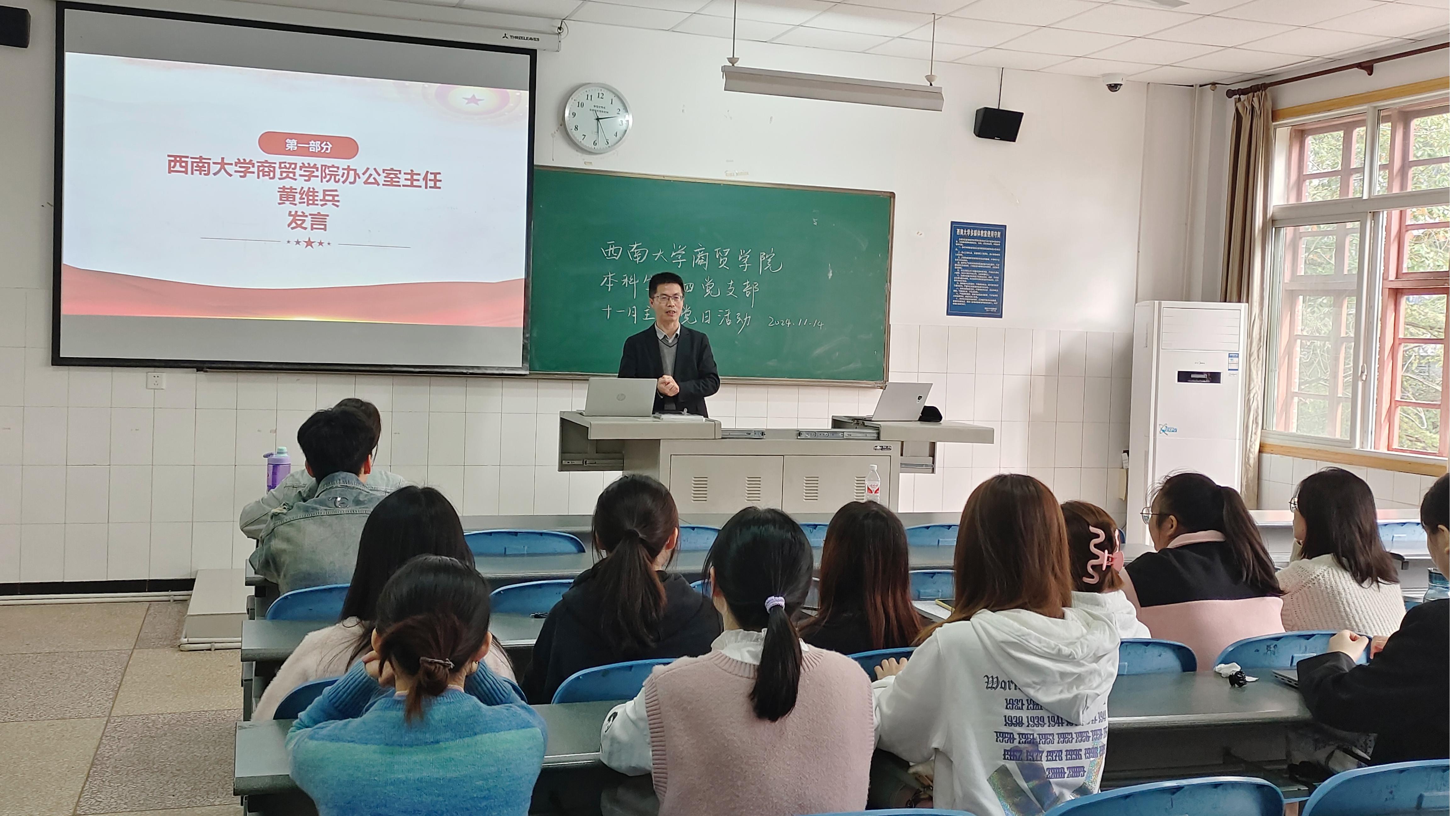 活动伊始,必赢优惠y272net本科生第四党支部的对接领导学院党委委员、办公室主任黄维兵作了讲话。黄主任强调了家风建设对党员个人成长、党组织建设的重要性,并告诫大家要发挥党员的先锋模范作用,以身作则,传承和弘扬好优良家风。