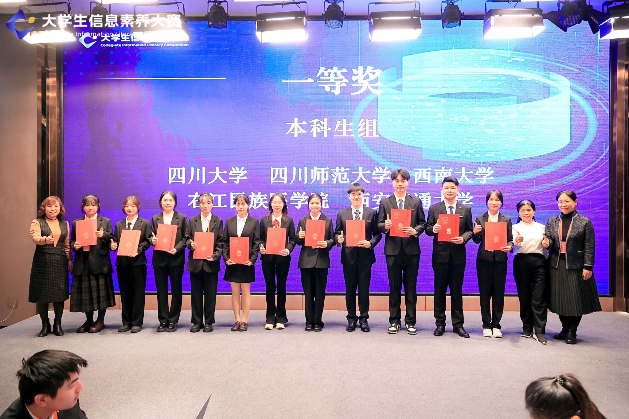 12月5日,2024年大学生信息素养大赛全国联赛在重庆大学成功举行。由学院2022级信息管理与信息系统专业魏文珺、黄姚、郑华阳三位同学组成的西南大学代表队荣获一等奖,学院教师张麒麟获优秀指导教师奖。