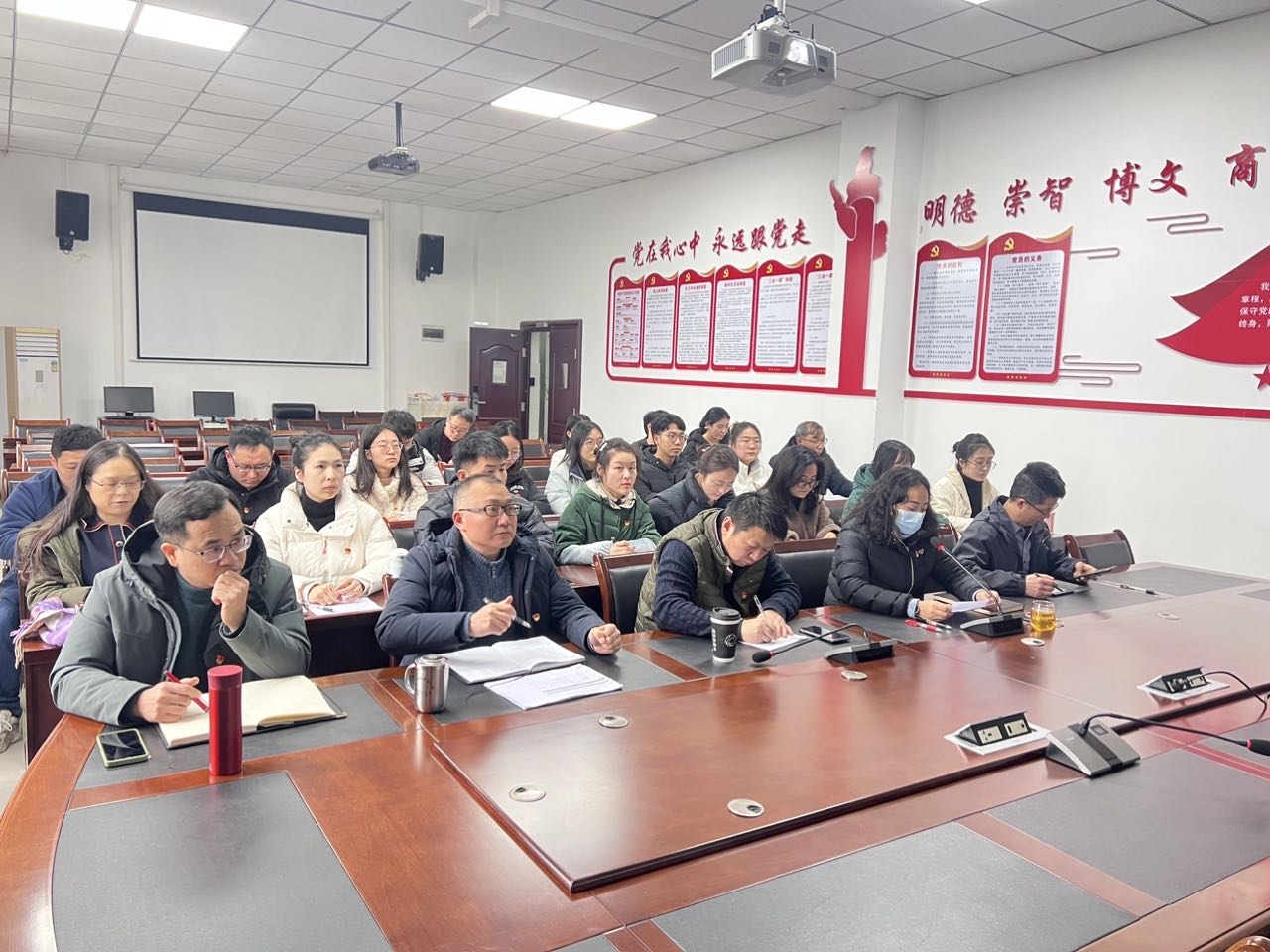 会议现场,与会同志认真听取述职发言,并进行现场测评。