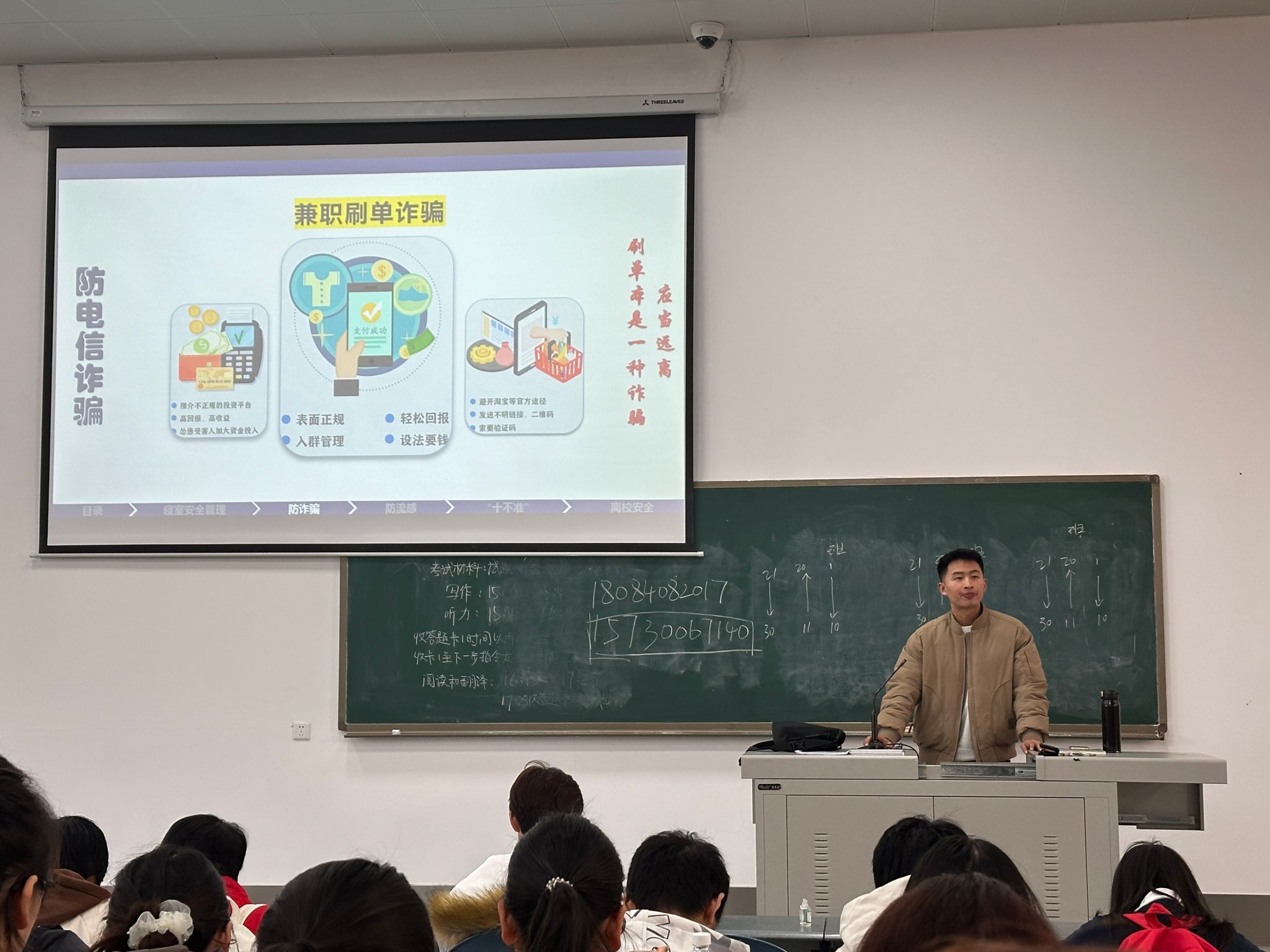 留校安全主题教育活动由廖鹏老师主持,各年级留校学生参加。会上,廖鹏老师强调了寒假留校的有关要求,一是提高安全防范意识。注重保障人身、财产、寝室、出行、网络、饮食等多方面安全,防范各类安全事故发生。二是强化制度意识。自觉遵守校、院各项规章制度,落实每日“异常”情况上报制度,外出严格履行相应的请假手续,学院将通过家校协同、网格化管理、不定期宿舍走访等举措做好监督管理工作。三是要求同学们合理规划假期。希望同学们利用好假期,聚焦学习查漏补缺、学科竞赛备赛、实习课外锻炼等,合理规划安排,度过一个充实有意义的假期。