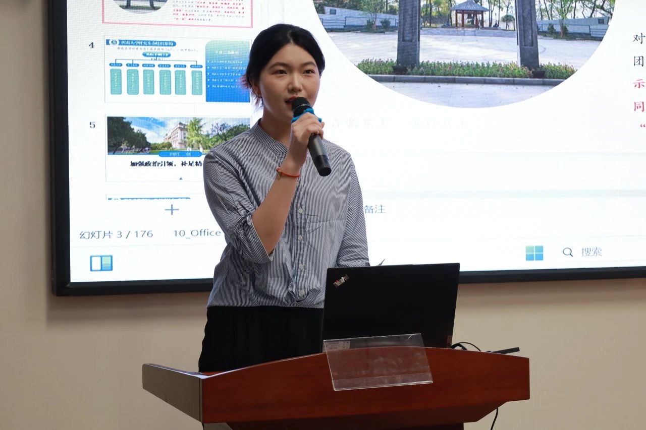 在学校开展的“大走访大调研”系列活动中,学习科研岗的戴紫怡同志作为学生代表讲话,她分享了自身在专业学习中的心得体会,并从如何建立长效的调研反馈机制、及时调整和完善相关政策与措施、如何打破学院壁垒、实现资源共享和优势互补等多个方面与各学院学生代表进行探讨,在相互交流与借鉴中共同进步。